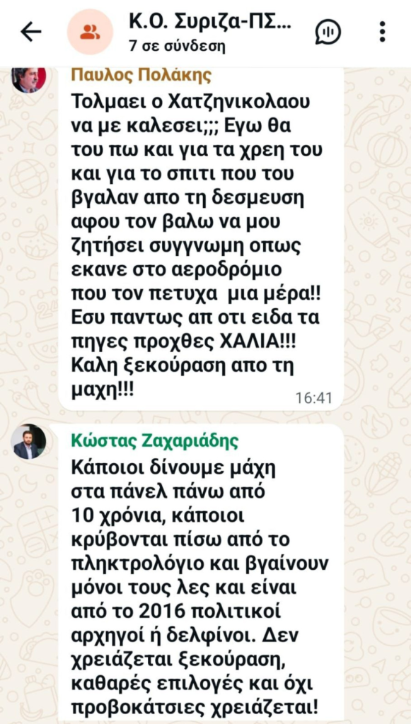Σφοδρή αντιπαράθεση ανάμεσα στον Κώστα Ζαχαριάδη και στον Παύλο Πολάκη στο chat της Κοινοβουλευτικής Ομάδας του ΣΥΡΙΖΑ με αφορμή τη συνέντευξη του εκπροσώπου Τύπου στο Σύριζα στον δημοσιογράφο Νίκο Χατζηνικολάου.