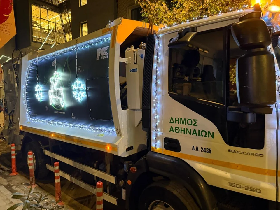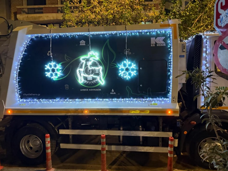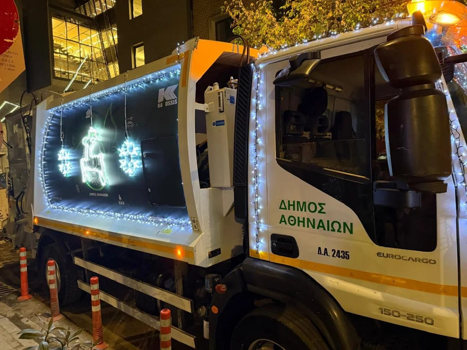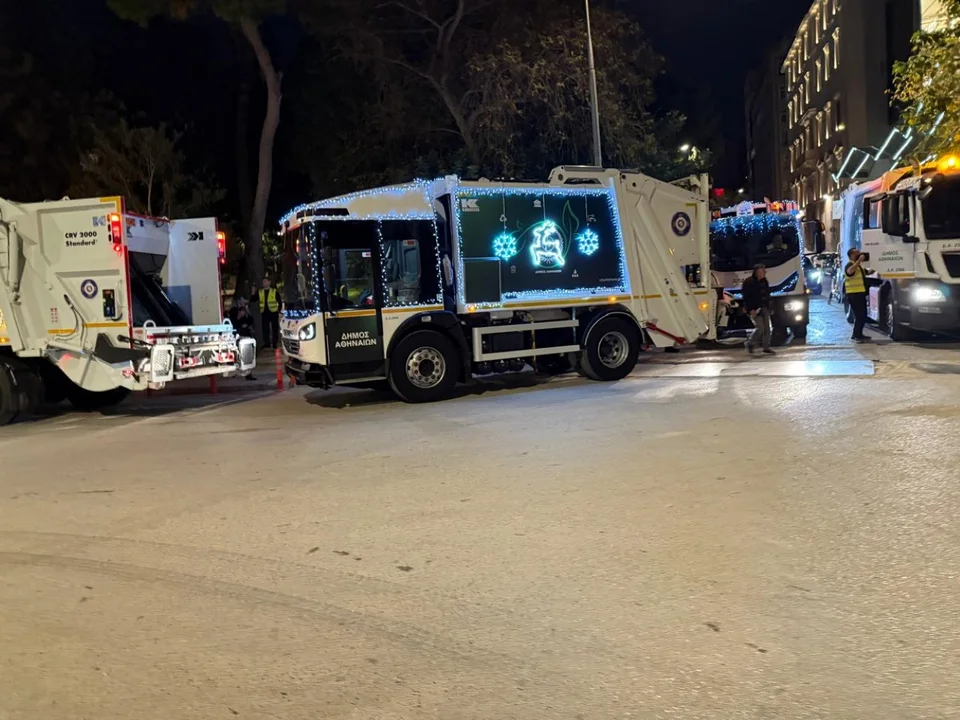 Φωτογραφίες από τα στολισμένα απορριμματοφόρα της Αθήνας