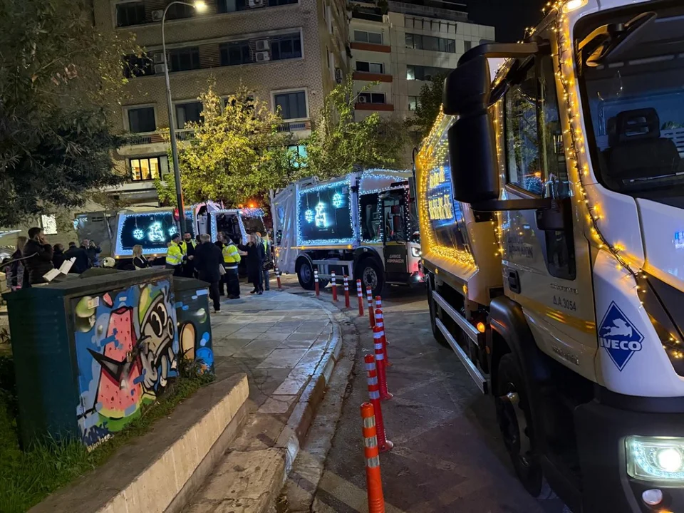 Όσοι τα συναντούν μιλούν για μια εικόνα που δεν είχαν ξαναδεί. Τα βαριά οχήματα της καθαριότητας, συνδεδεμένα μέχρι σήμερα αποκλειστικά με την καθημερινή δουλειά, αποκτούν ξαφνικά έναν διαφορετικό ρόλο και γίνονται φορείς γιορτινής διάθεσης.