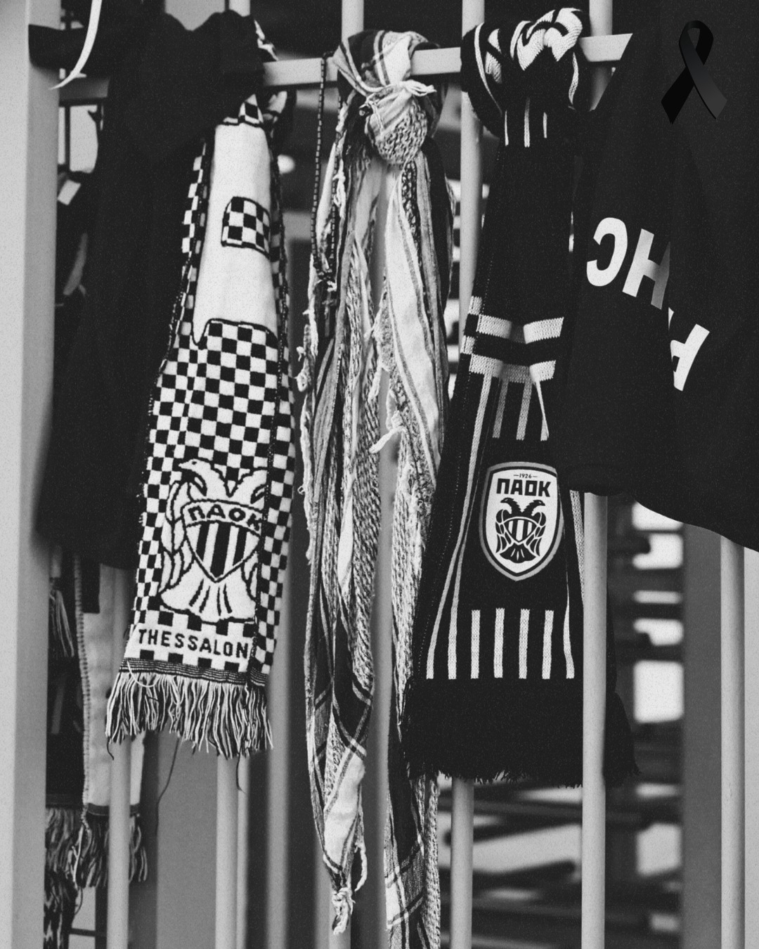 Η ΠΑΕ ΠΑΟΚ ως ένδειξη σεβασμού κυμάτισε μεσίστιες τις σημαίες ως ένδειξη σεβασμού.