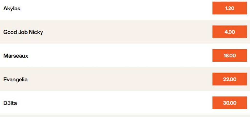 Σύμφωνα με τις στοιχηματικές εταιρείες το απόλυτο φαβορί για την εκπροσώπηση της χώρας παραμένει ο Akylas με το «Ferto», συγκεντρώνοντας τη χαμηλότερη απόδοση (1.20). Ακολουθεί ο Good Job Nicky με το «Dark Side of the Moon», με απόδοση 4.00. Στην τρίτη θέση φιγουράρει η Marseaux και το «Χάνομαι», ενώ την πεντάδα συμπληρώνουν η Evangelia με το «Parea» και ο D3lta που θα διαγωνιστεί με το τραγούδι «Mad About it».