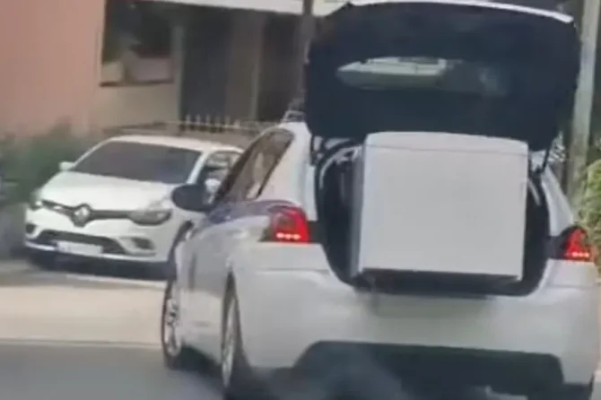 Δεν είναι ταξί, είναι μεταφορική: Περιπολικό στο Καματερό μεταφέρει ψυγείο σε ανοιχτό πορτ μπαγκάζ
